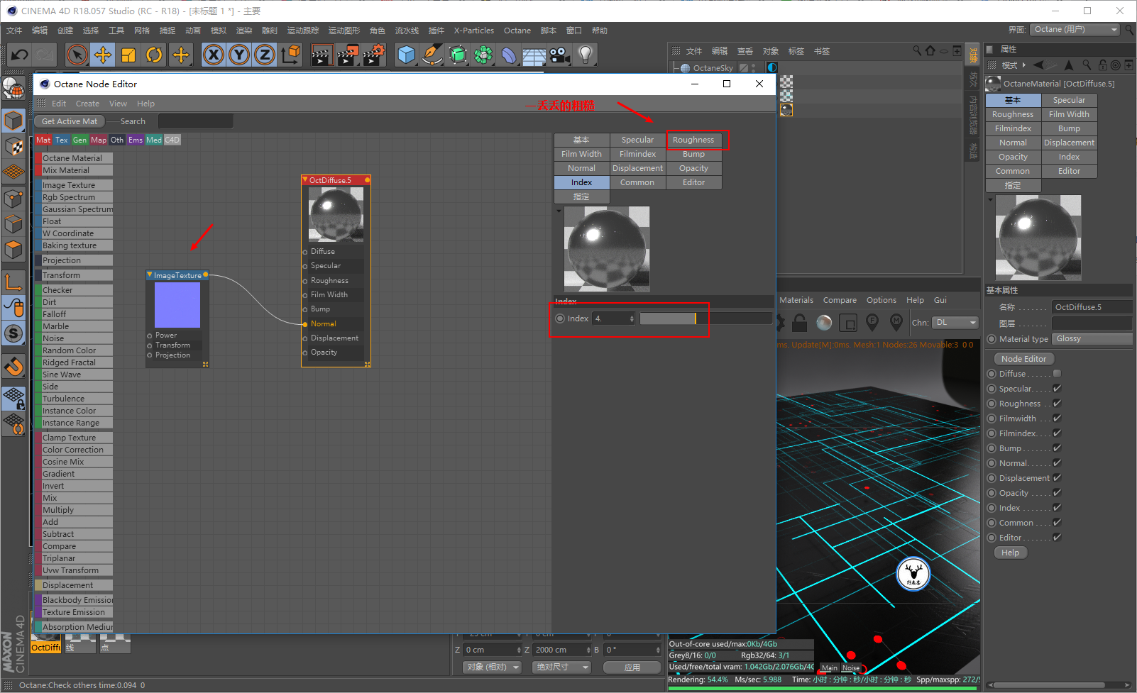 OC里涉及到纹理贴图或者HDR贴图的话最好先添加一个ImageTexture以后,再把贴图拖进来,这样可以对贴图进行最大限度的调整。