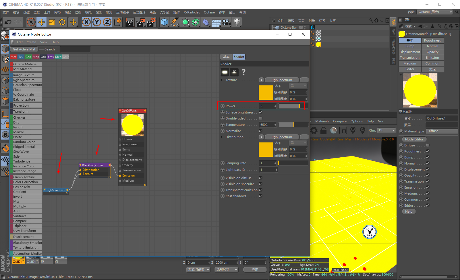 新建一个黄色的发光材质,参数看着效果来搞哈: