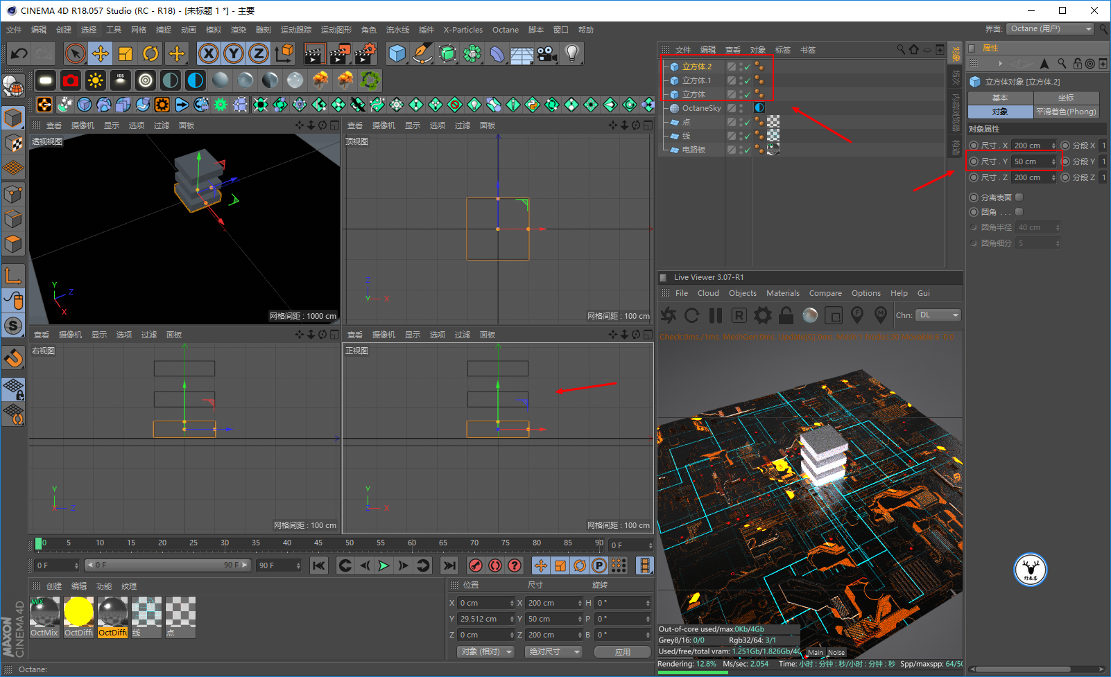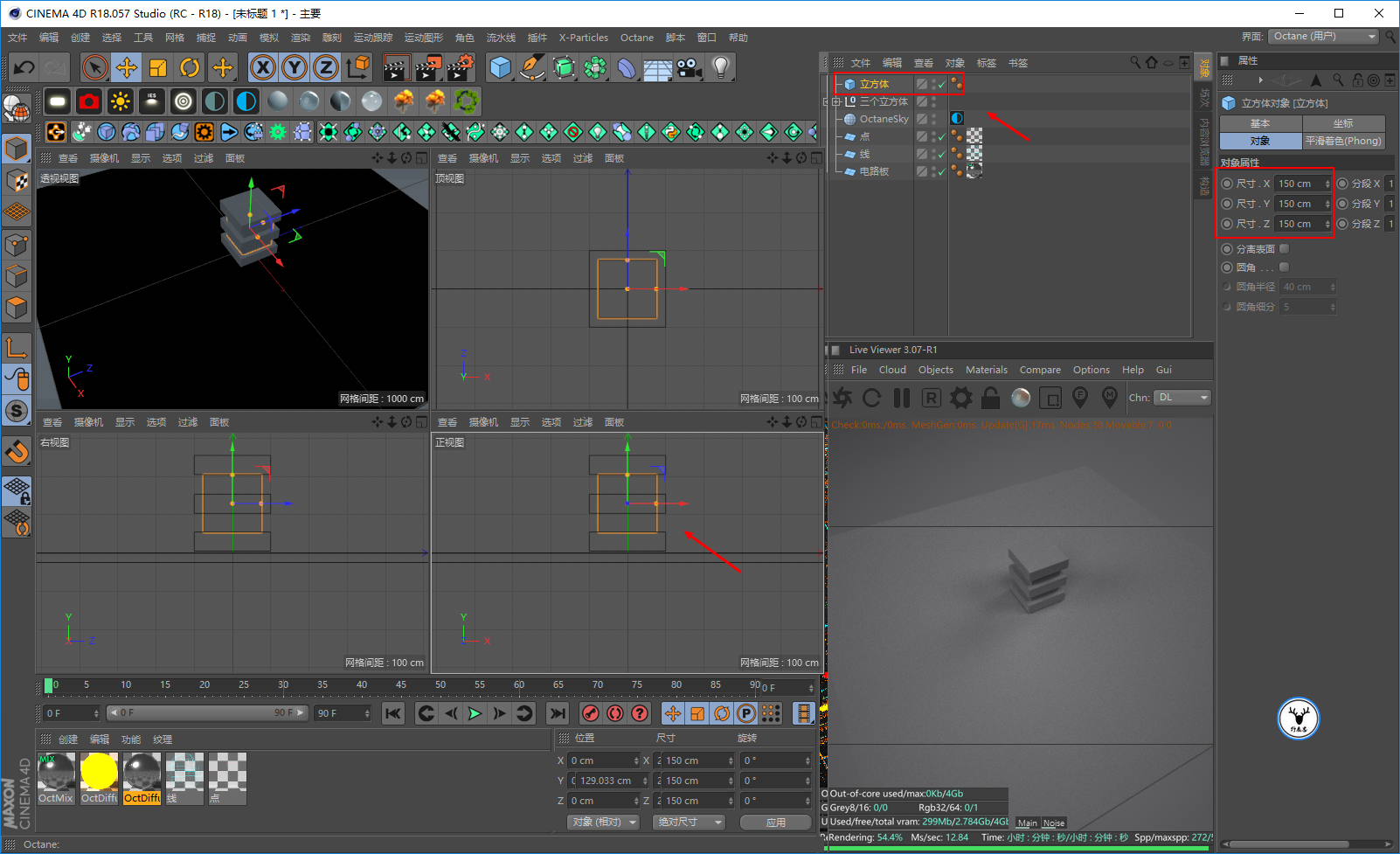 背景做好以后我们再来做一个主物体吧,新建三个这样的立方体,这一步不用说吧: