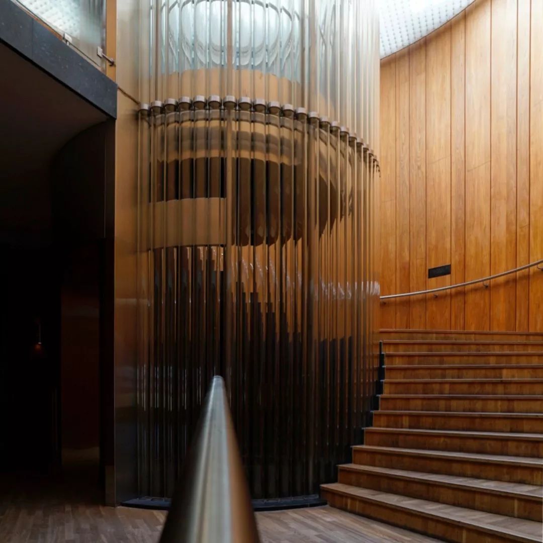 Henie Onstad艺术中心楼梯内部的设计使得展厅像扇形一样散布在楼梯中央。