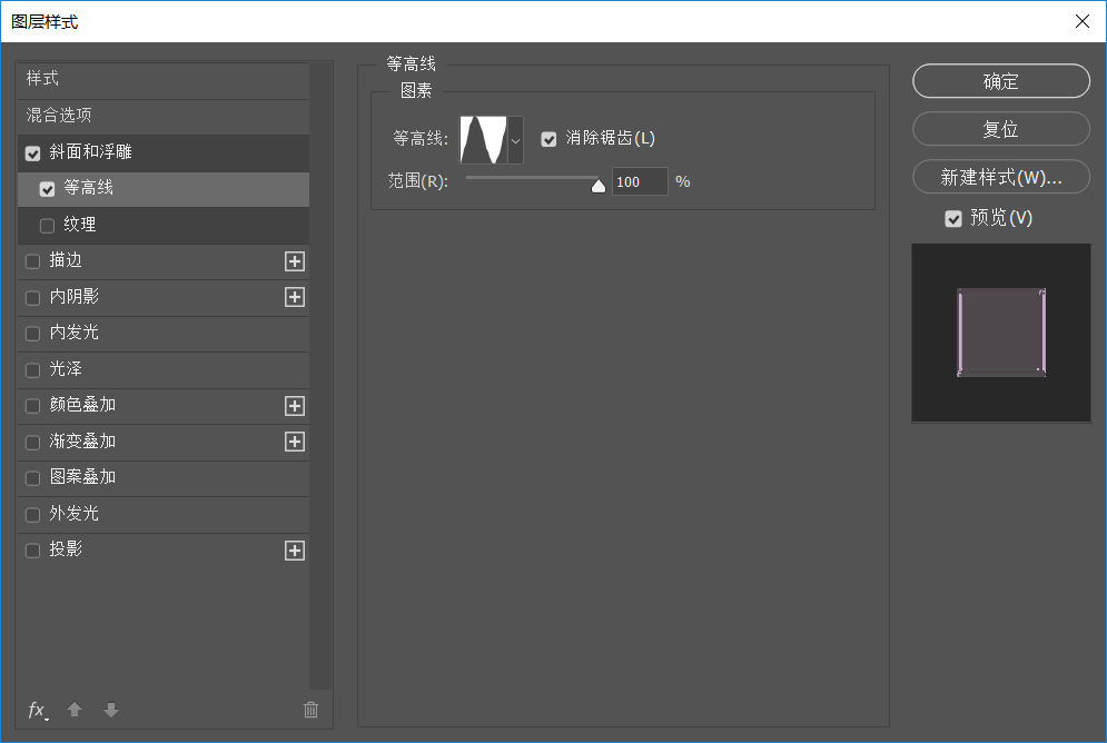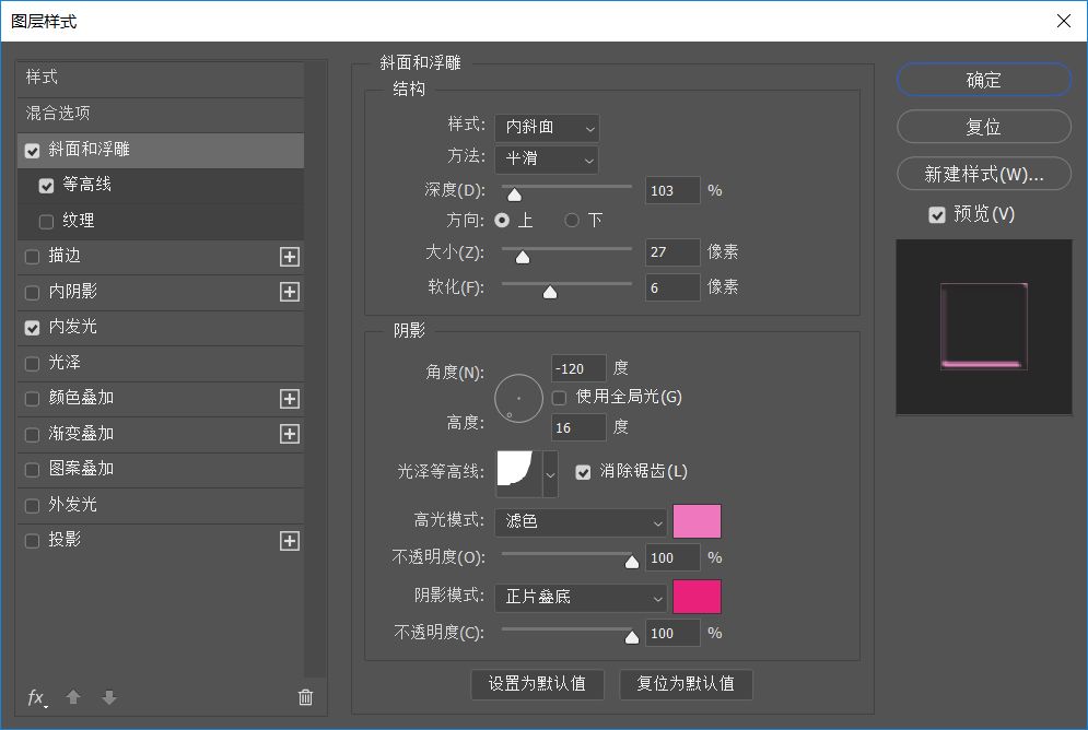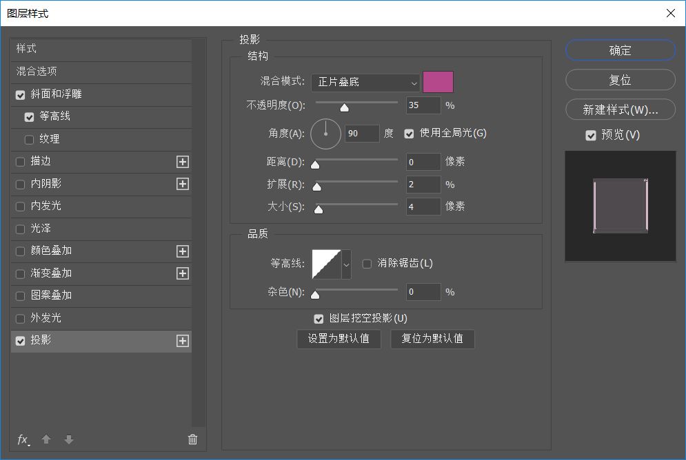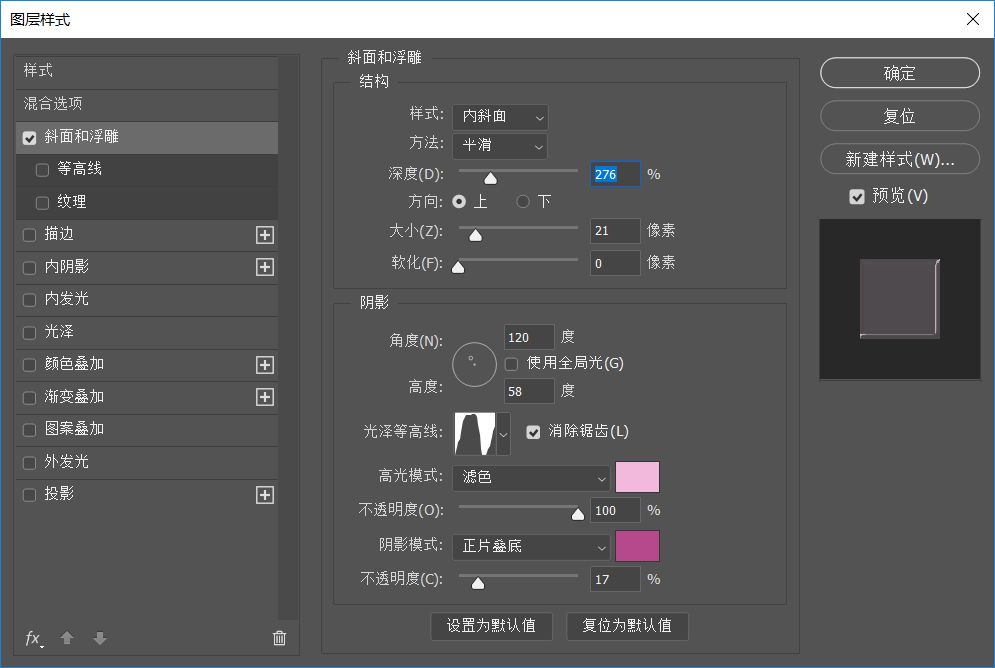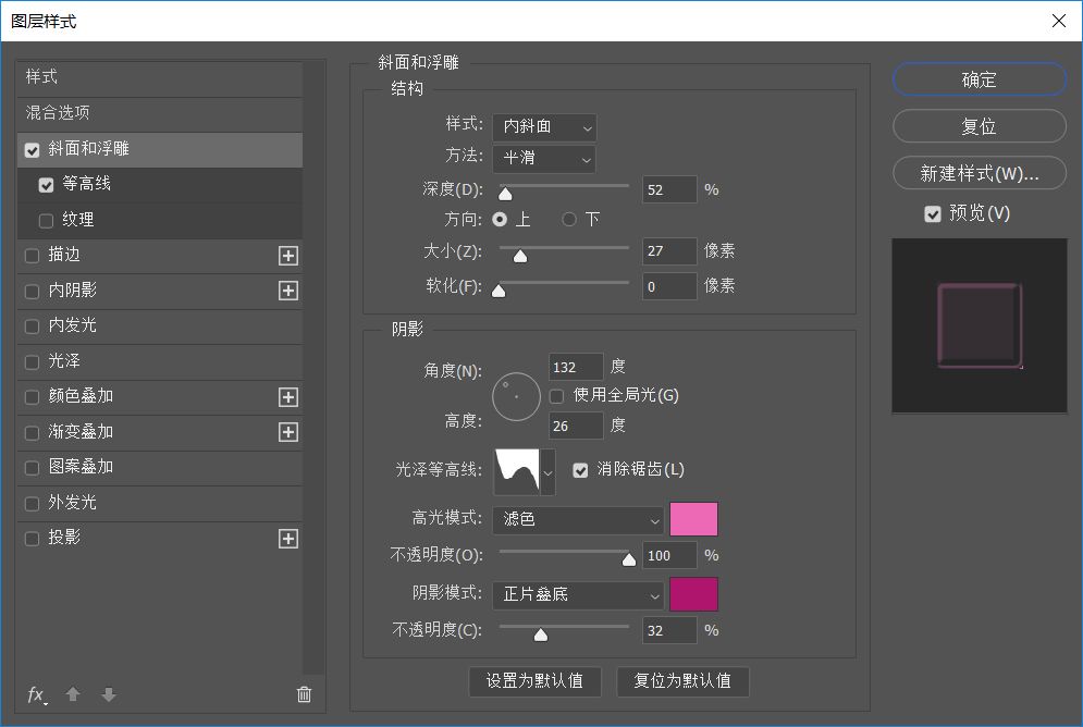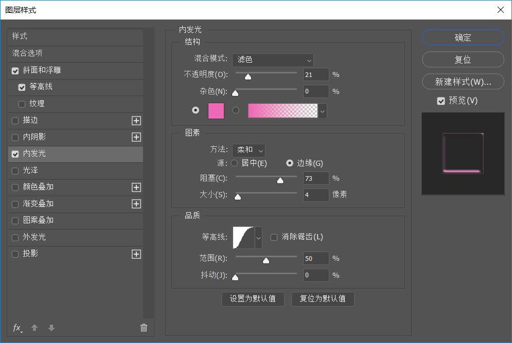 第一层做好了,接着是第二层,复制图层,填充度改为0%,继续更改图层样式。