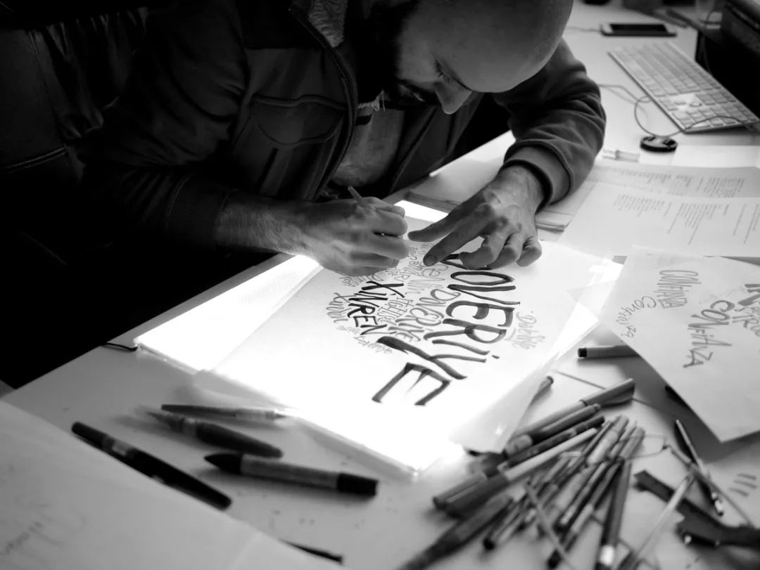 图中Hiii Typography 2013英文组金奖获得者-Joluvian正根据书法手写字为灵感创作