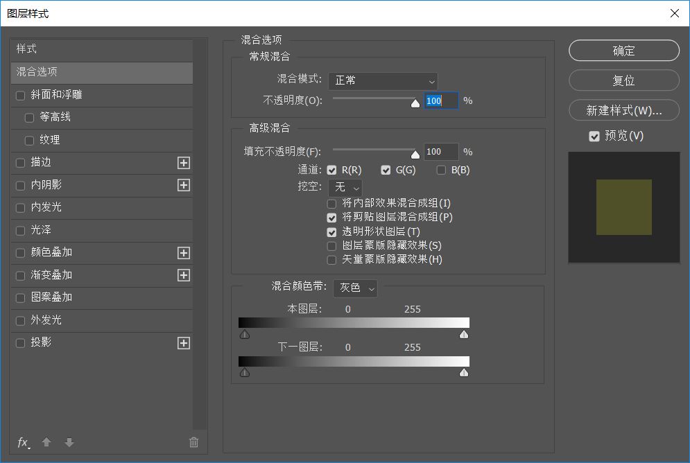 每个图层的通道,有一个不勾选,比如图层0,只有R、G,以此类推~