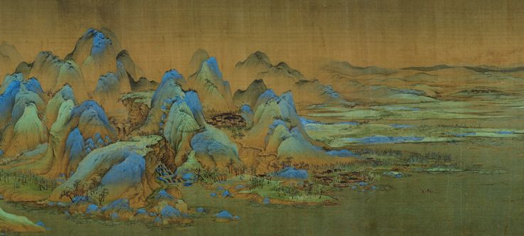 这幅青绿山水画的代表作,以自然中最宁静的色彩作为基调来构成画面。