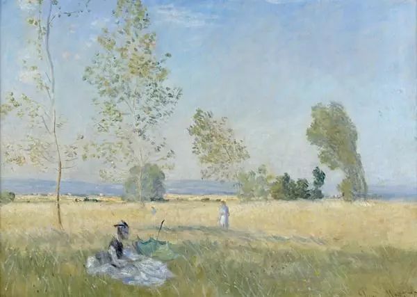 比如这幅《夏日》,莫奈用各种深浅不同的绿色点缀整个画面。