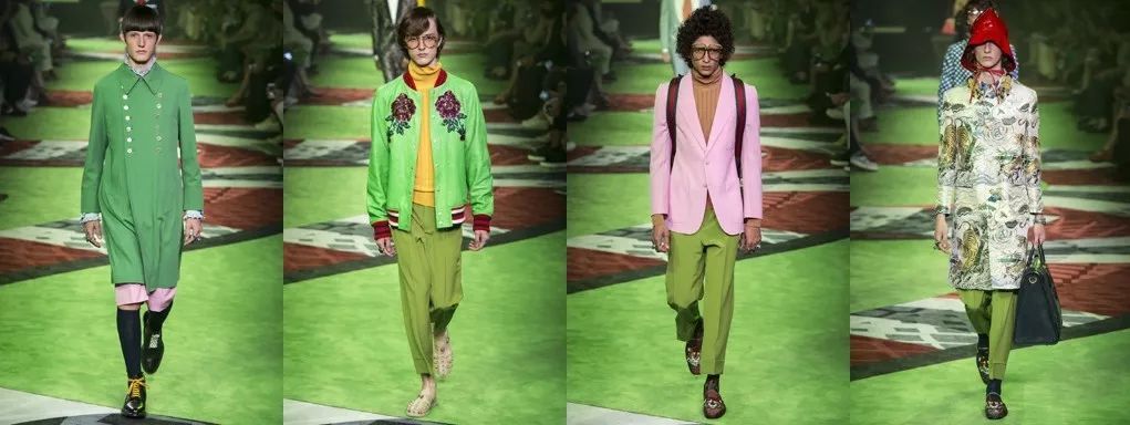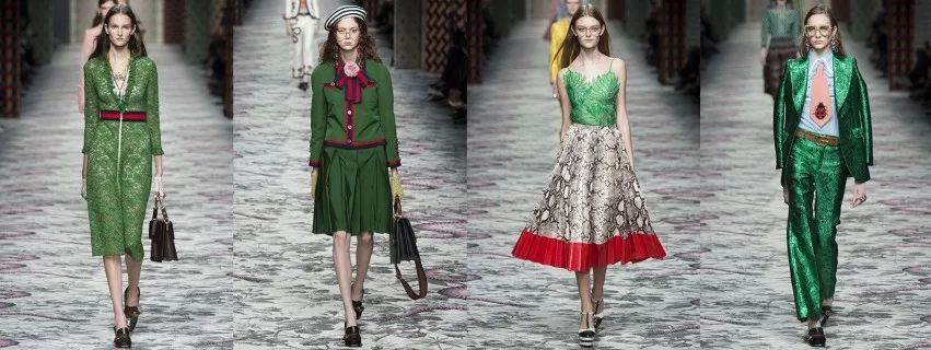 在最近几年GUCCI的秀场上,我们就经常能看到各种不同的绿色: