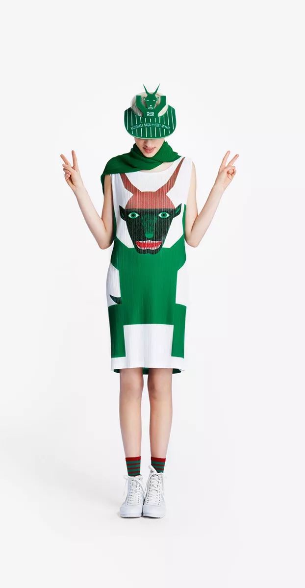 2014年,三宅一生为永井一正的Pleats Please品牌创作了一系列服装和配饰,其灵感来自1993年绘制的“LIFE”系列海报中的五种风格化动物的主题。