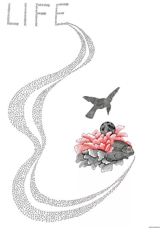 这一时期,永井一正老师将更多情感注入在「LIFE」系列海报,诠释关于生命、生活、生物等话题。