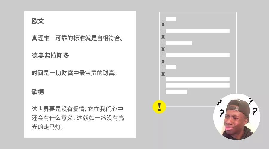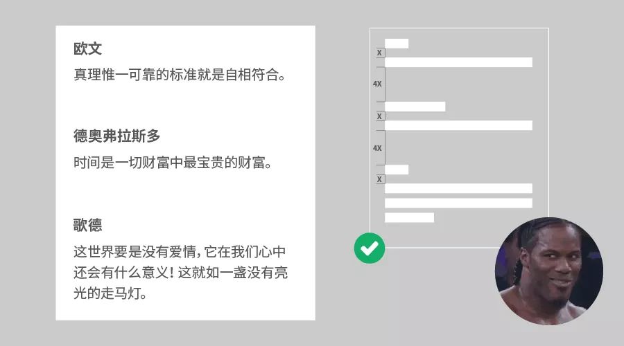 在这个名人名言的案例中,标题与内容之间的距离完全相等,我们很大程度上就会产生哪段标题对应哪段文字的疑惑。如果我们将接近性原则处理好之后会发生什么?