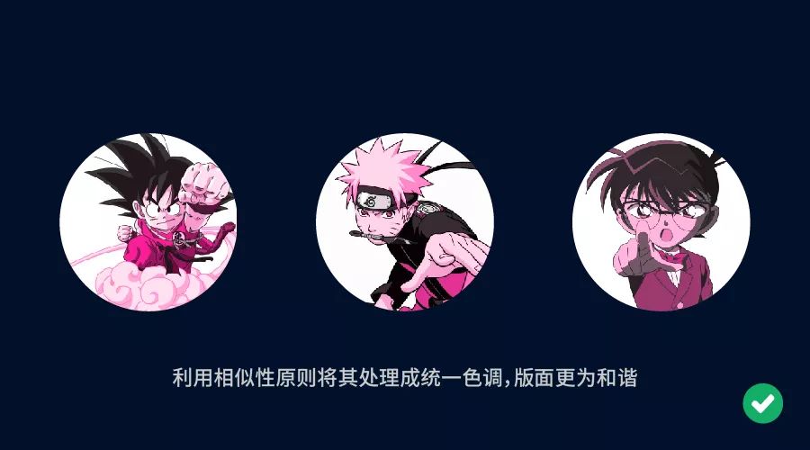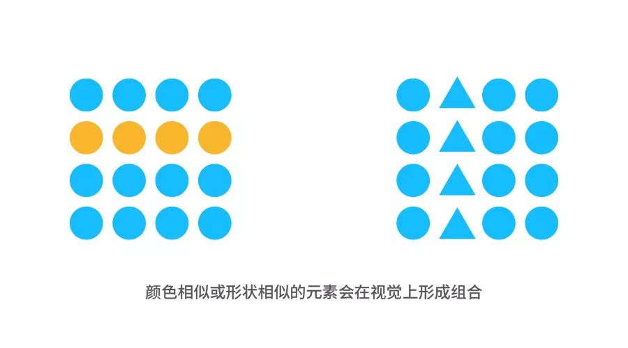 在同一组图形中,颜色或者形状相似的元素会形成一个视觉单元。