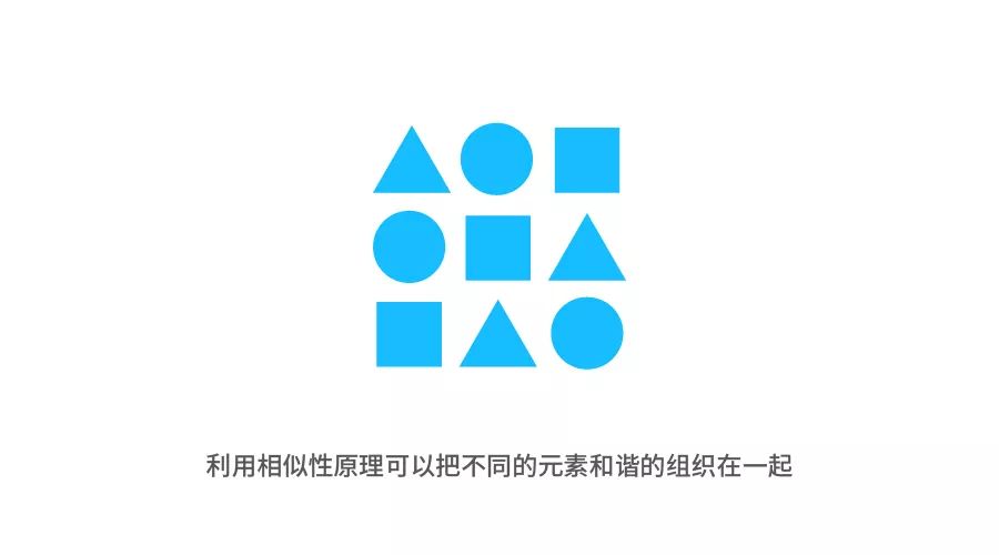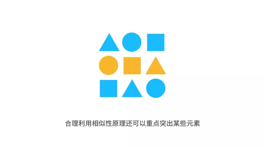 接近性原则强调的是位置对我们视觉的影响,而相似性原则强调视觉元素的内容对视觉的影响,如颜色、形状、大小、方向等等。如果其他因素一样,只有这些内容不同,那么我们的视觉会把相似的内容看成一个整体。