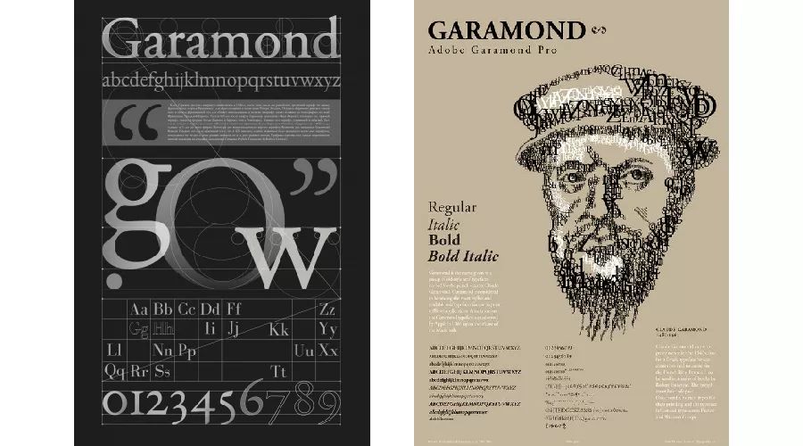 偏传统衬线体的代表有Garamond、Caslon等。他们的传统气质非常强烈,适合传达传统、文艺、人文的气质与故事感。