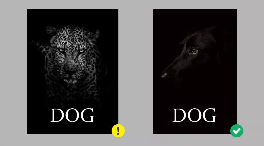 上图左侧的案例文字是狗,但素材图却是个豹子,于是就成了契合度不够的典型。