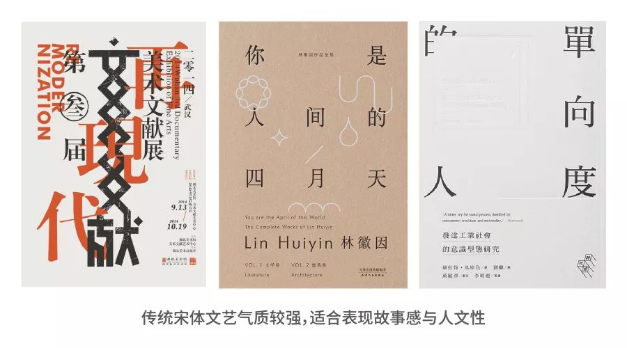 传统宋体与现代宋体所传达的气质也有差别。传统的宋体更能够表现出文艺、故事、人文的感觉;而现代宋体则偏向传递女性优雅、时尚的感觉。