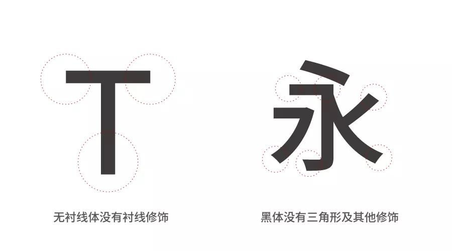 无衬线体,即没有衬线修饰的字体。黑体也是没有三角形装饰特征的字体。相较于衬线体与宋体而言,其更为简约、现代,能够表达理性、利落的特质。