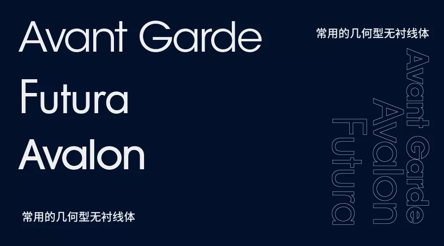 几何型无衬线体的代表有Ftura、Avalon、Avant Garded等,这种字体有强烈的几何感,显得很现代、高端。