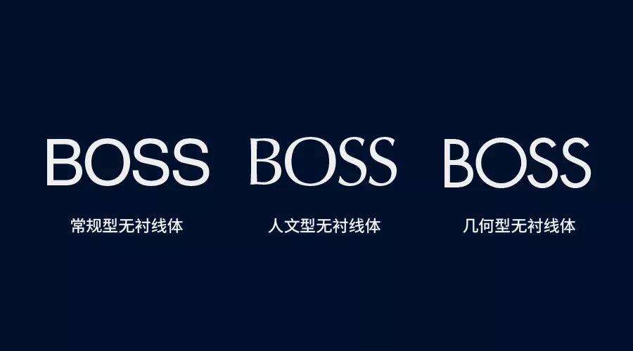 其中常规型无衬线体是最常见最普通的,可以说是最没个性的;人文型无衬线体的笔画并不是等宽的,而是有过渡过变化,S、C等字母的切口也是宽的,给人的感觉很秀丽、优雅,同时又具有一点文艺气质;几何型无衬线体更像是用几何形状切出来的,给人的感觉很简约、时尚、现代。
