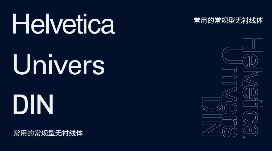 常见的常规型无衬线体有Helvetica、Univers、DIN等,他们给人的感觉是现代、理性、严谨的,同时也是最没个性的。