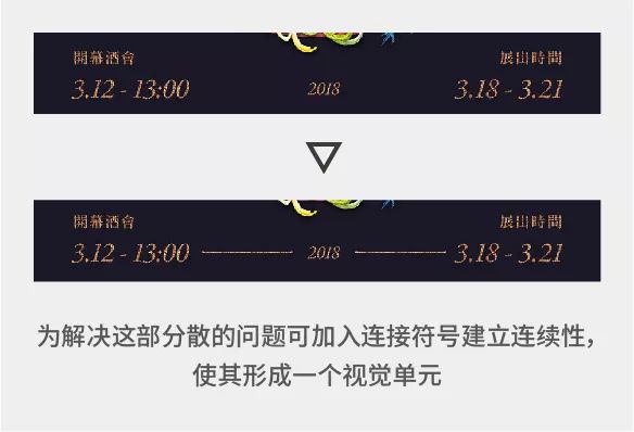 这里考一下大家,如何利用连续性原则将上图比较散的年份和日期建立联系感?要求不能改变两者的距离。