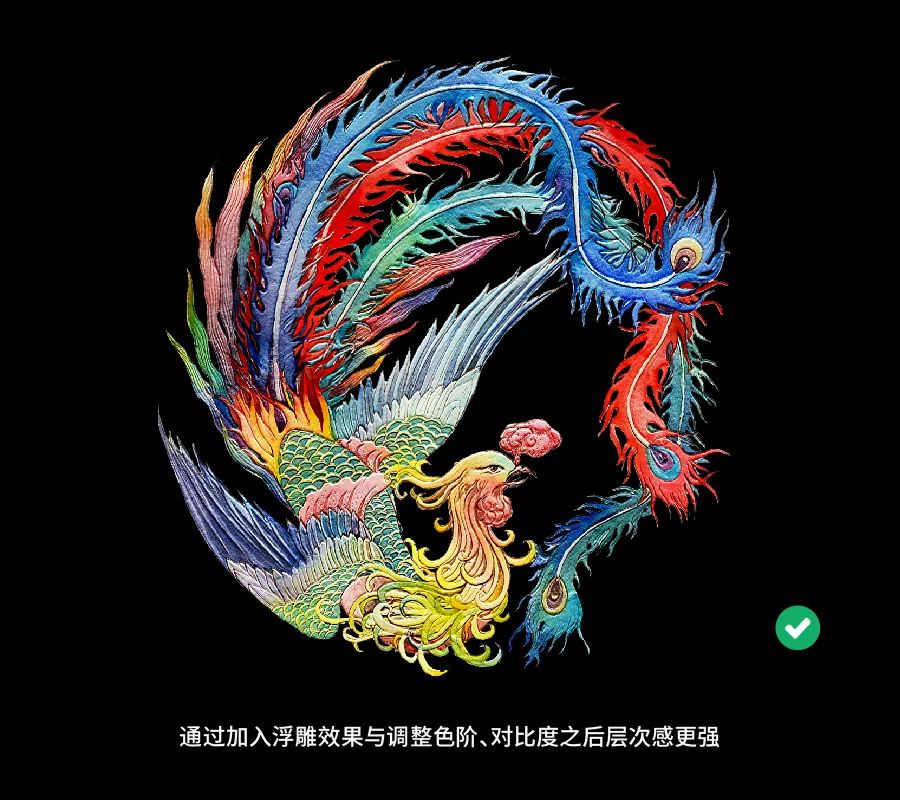 处理后素材的层次感通过浮雕效果表现了出来,增添一些东方韵味。对其色阶、对比度的调整更使其表现力增加了几分。