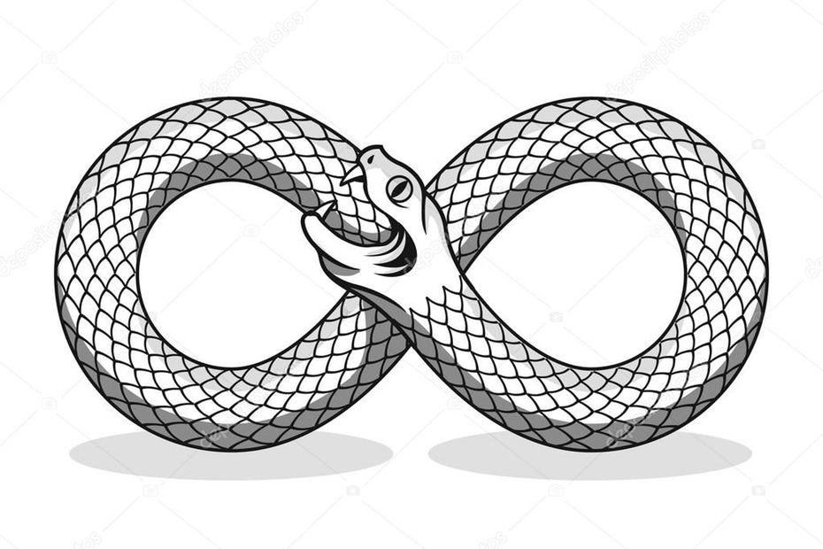 但是“无限”这个最古老的含义出现在埃及的Ouroboros上,这是一条蛇吃着它自己的尾巴 - 一种不那么微妙的死亡和重生循环的代表。