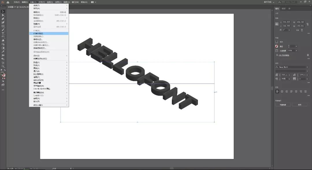 在AI中创建一个新文档,并输入文字。这里我用的是字由上的Nexa Bold,别的字体也可以,只是注意不要太细。