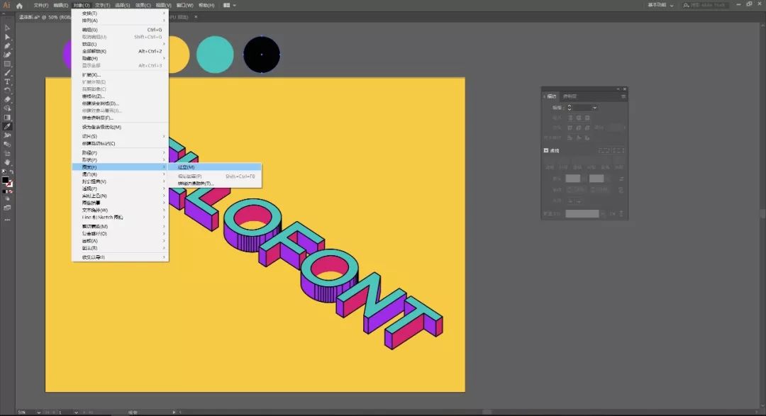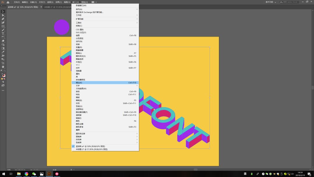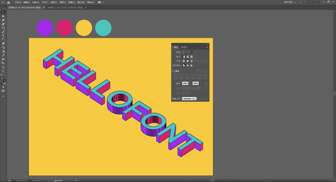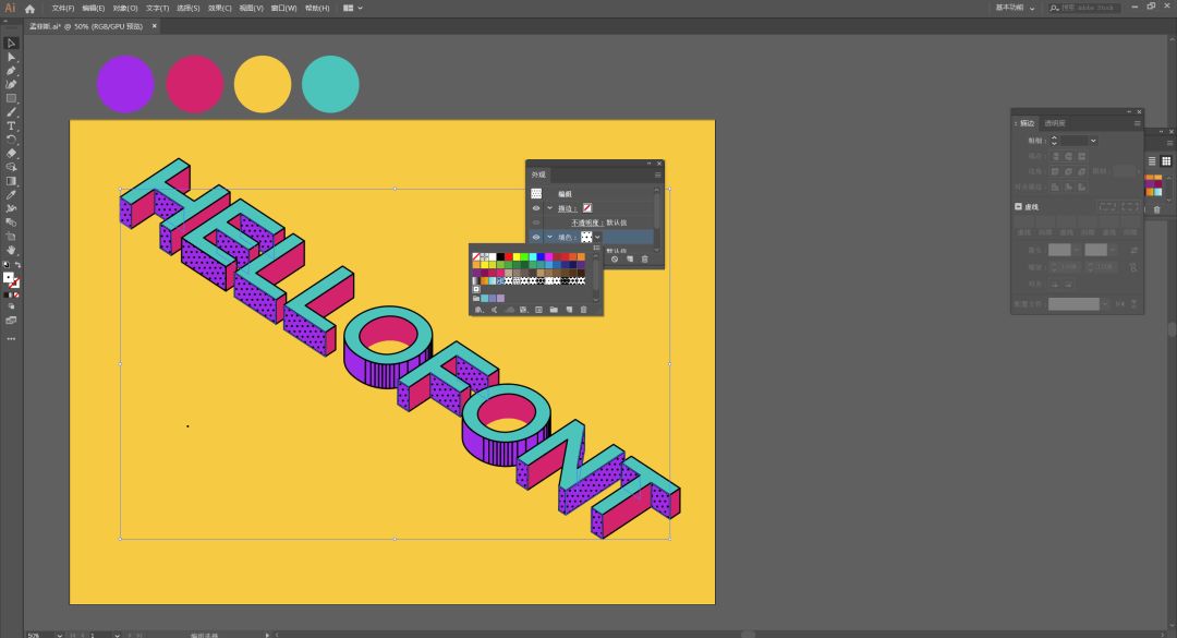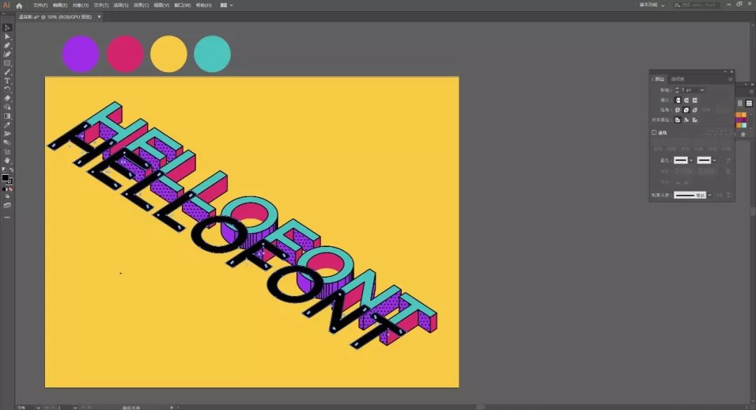 现在要进行描边了,背景总会出来捣乱,所以可以先点击黄色矩形,再对象>锁定,就可以框选“hellofont”了,再窗口>描边。