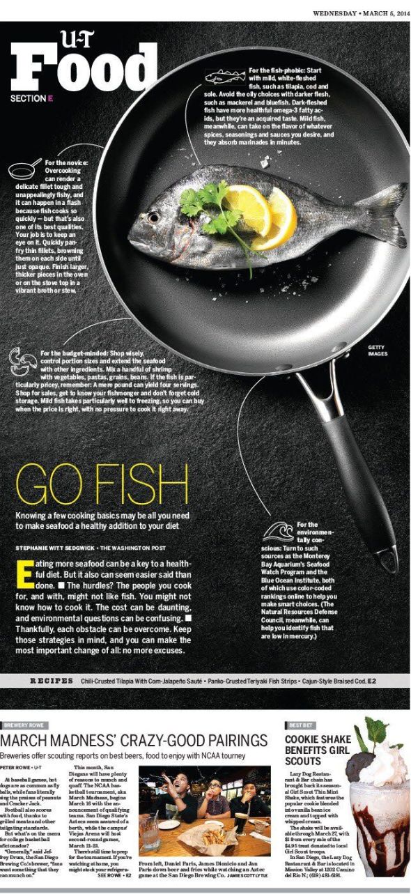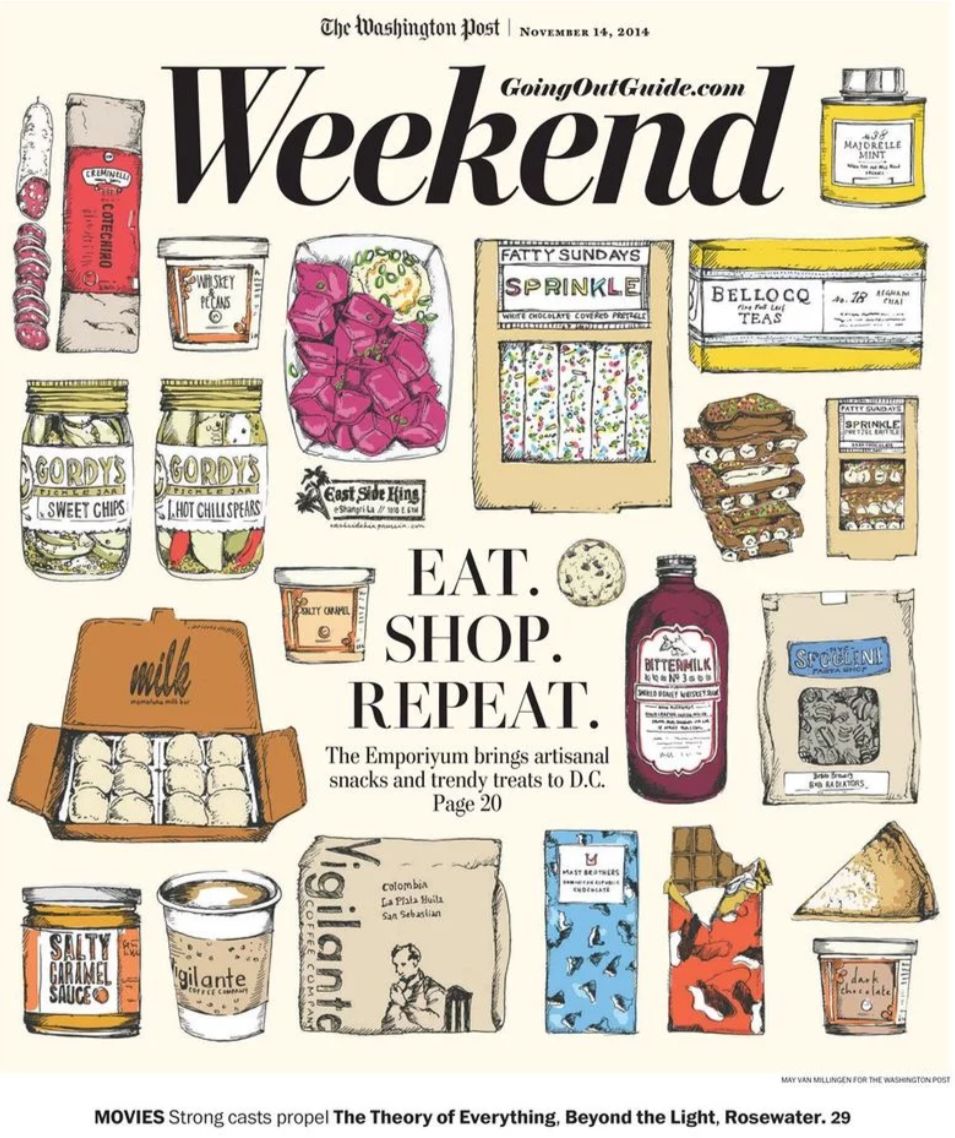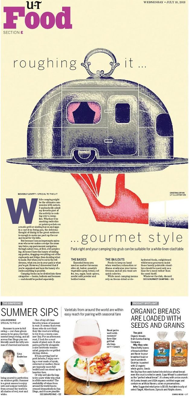 没人规定报纸必须是一坨一坨的白底黑字,在U-T食品封面上,插图画家克里斯蒂娜·比维克用创意图像打断信息流内容,突出表达了观点。