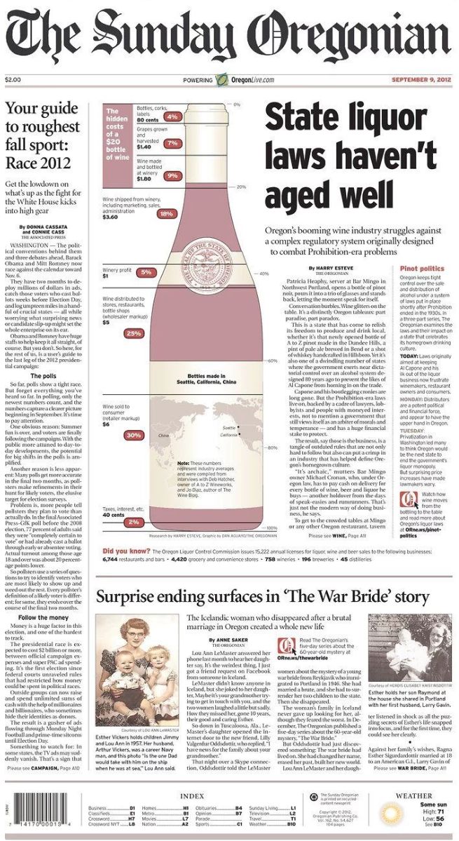 在The Sunday Oregonian这则新闻里,如果不是采用了信息图表,肯定是一串毫无可读性的数字罗列。