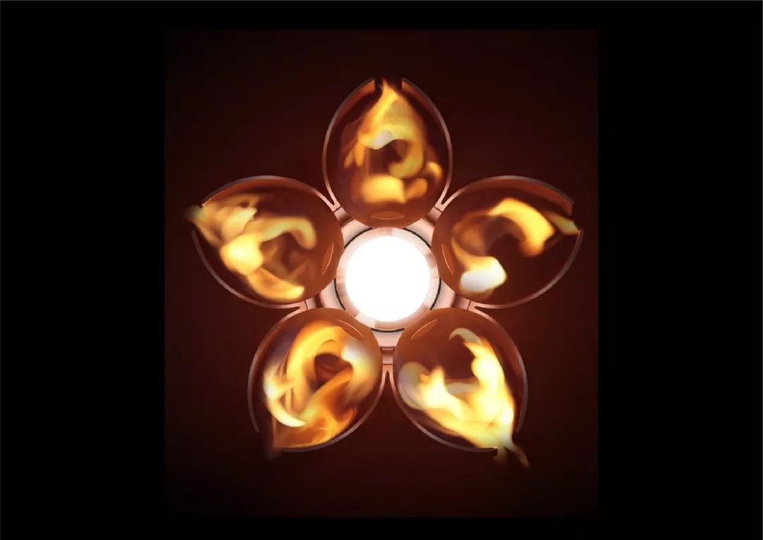 重新设计的方格组成了一组抽象的火焰,具有火焰向上的动感。
