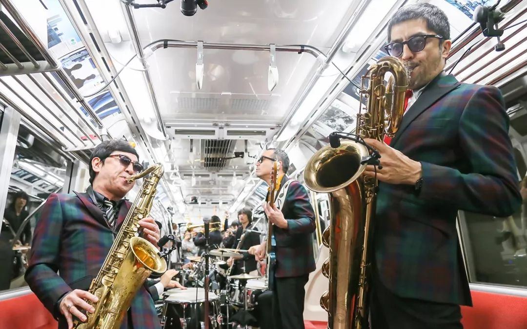 2017年,都营地铁邀请了日本著名的爵士乐团Tokyo Ska Paradise在飞驰的大江户线上举办了一场超high的地下爵士音乐会,电车车厢变成了“移动live house”。