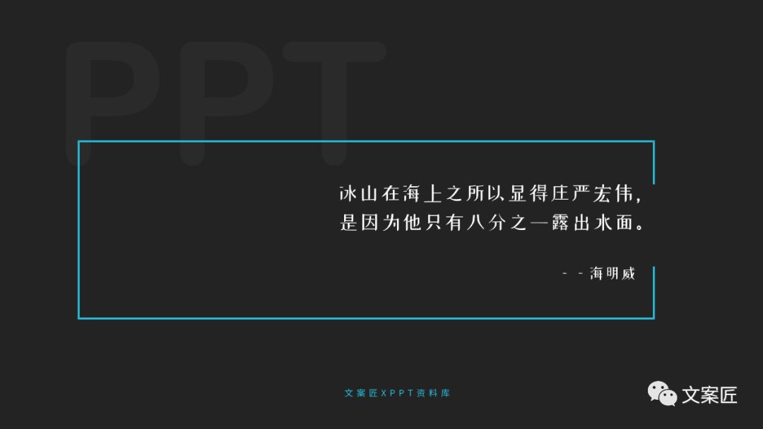 恩,当然,你的方案本身出彩是最重要的,这些文案金句是锦上添花而不是雪中送炭。今天,就翻出我的资料库,给你们分享适合用在PPT里面的文案金句。