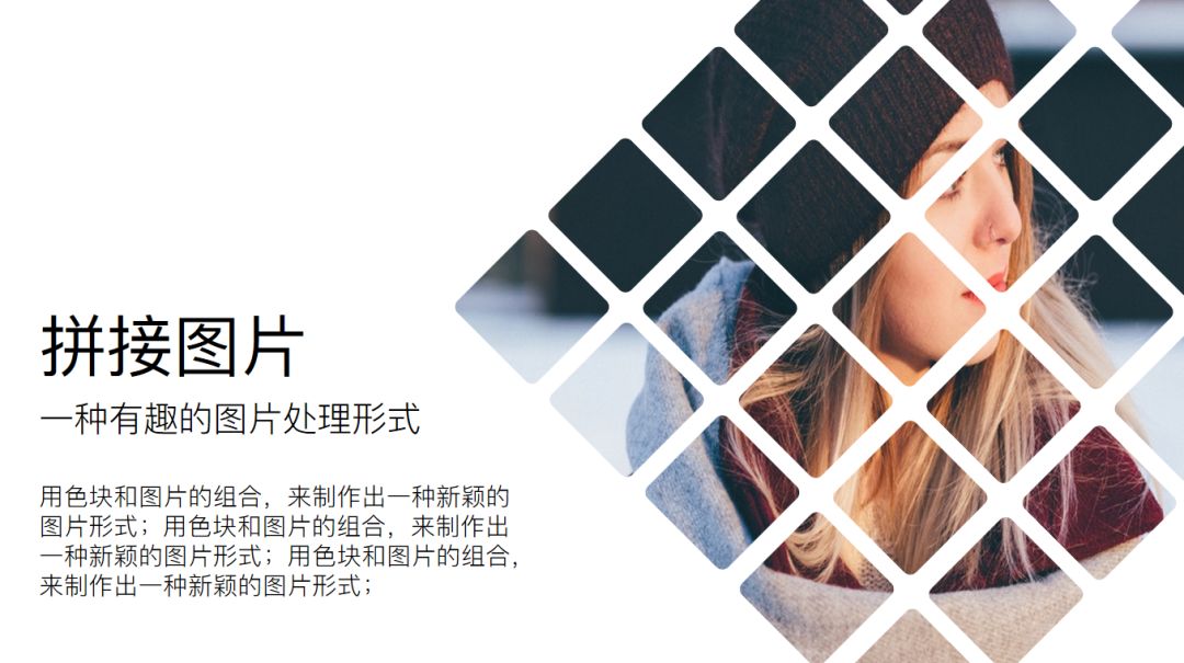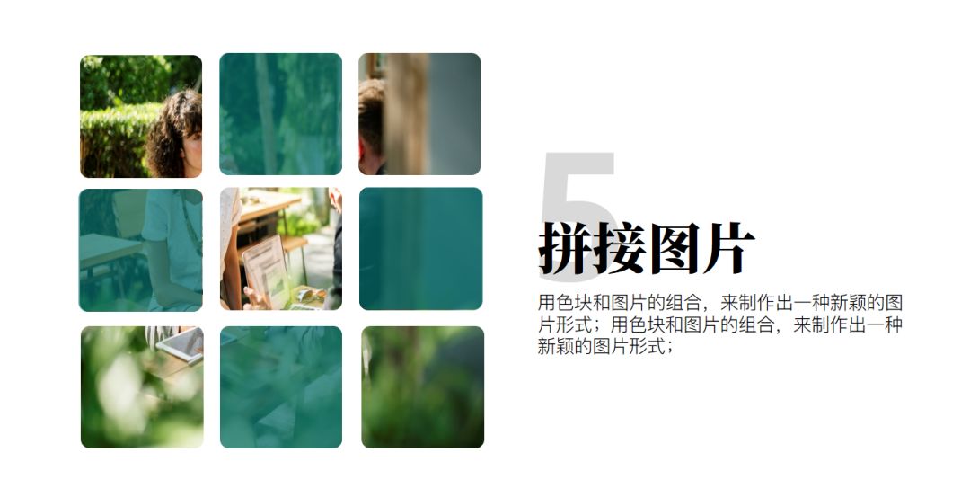 简单来说就是将一张图片用色块拆分成多个部分,显得更灵活,更有趣。