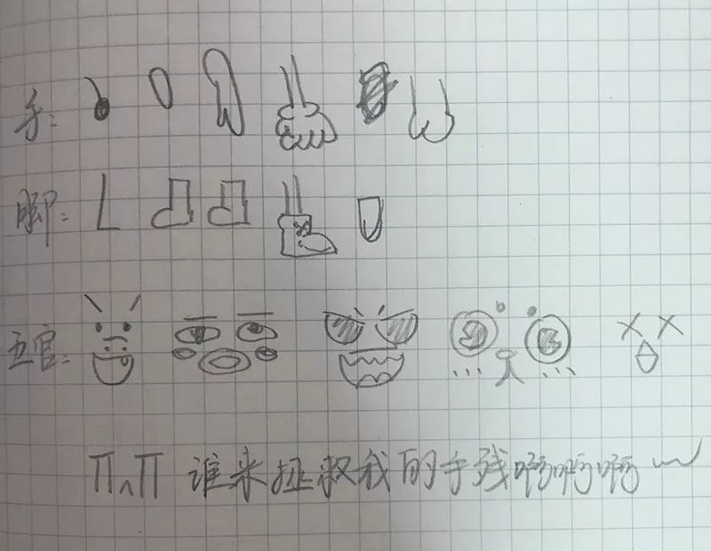 首先,我们需要拿出小学的美术水平画一些手/脚/五官。