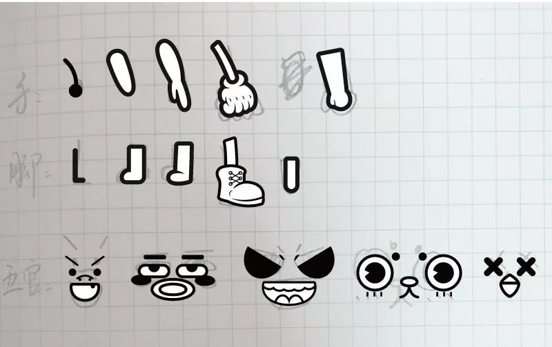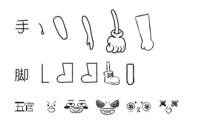 不同的五官和手脚能拼凑出不同风格的卡通形象哦