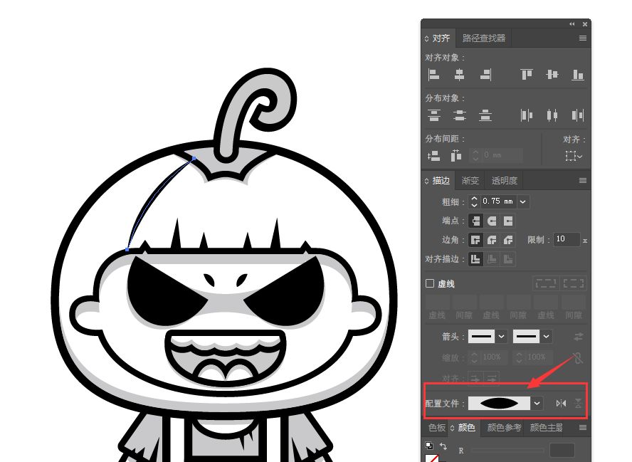 要注意卡通形象的对称原则,南瓜的头包括部分细节一定要对称