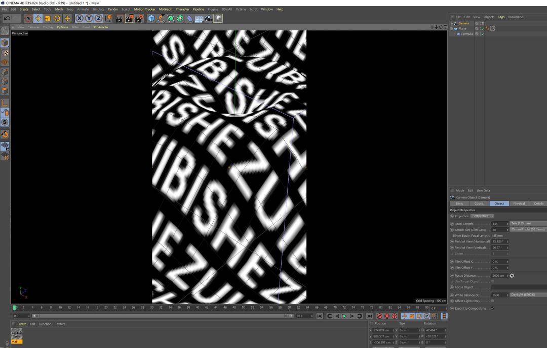 在对象管理器中将 Formula(方程式)变形器拖至平面对象下方,作为平面的子层级,此时变形器才能生效。