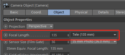 将Focal Length(焦距)数值调整为135,减少镜头对画面边缘的畸变。