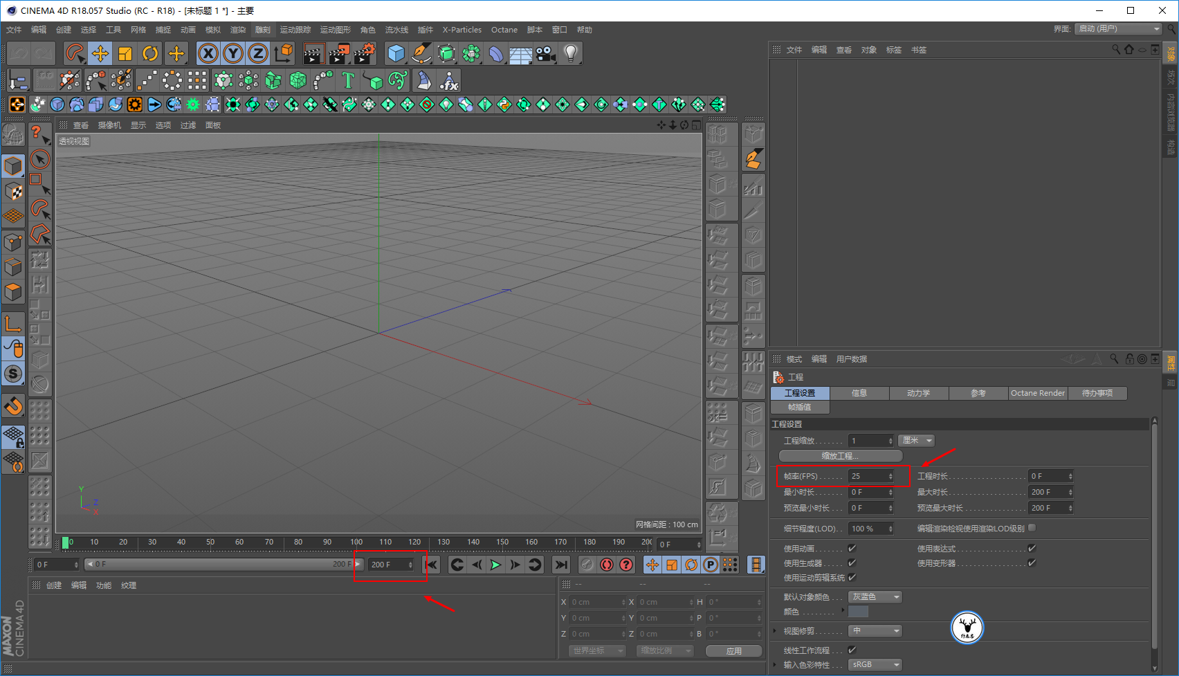 打开C4D,把帧速率设置为25帧,总共就做200帧也就是8秒的动画吧: