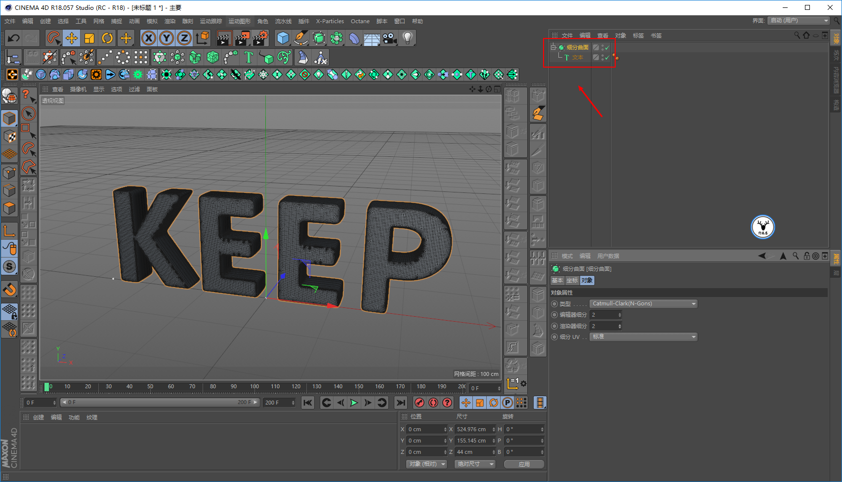 再给文字添加细分曲面,细分数2就好了: