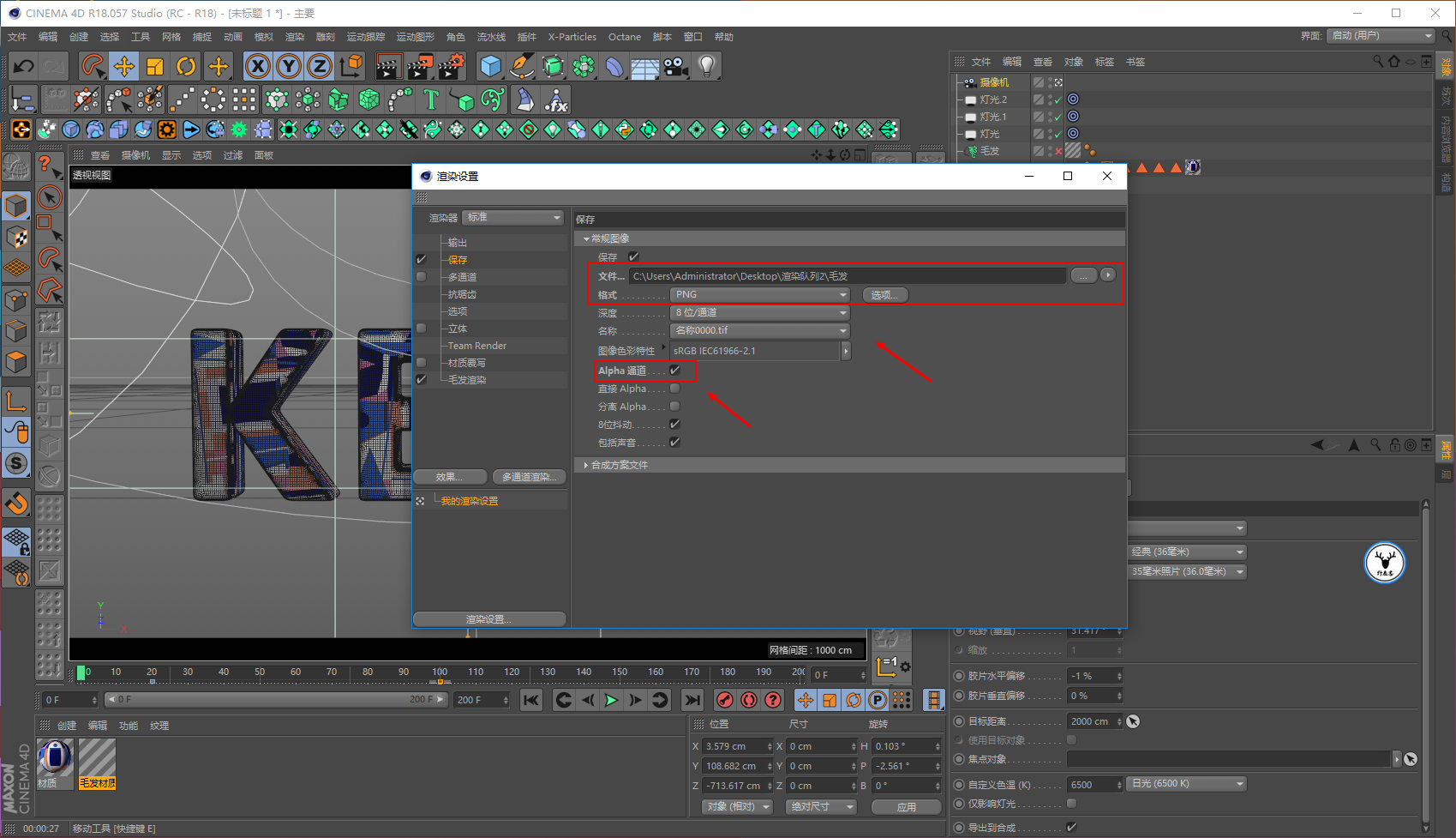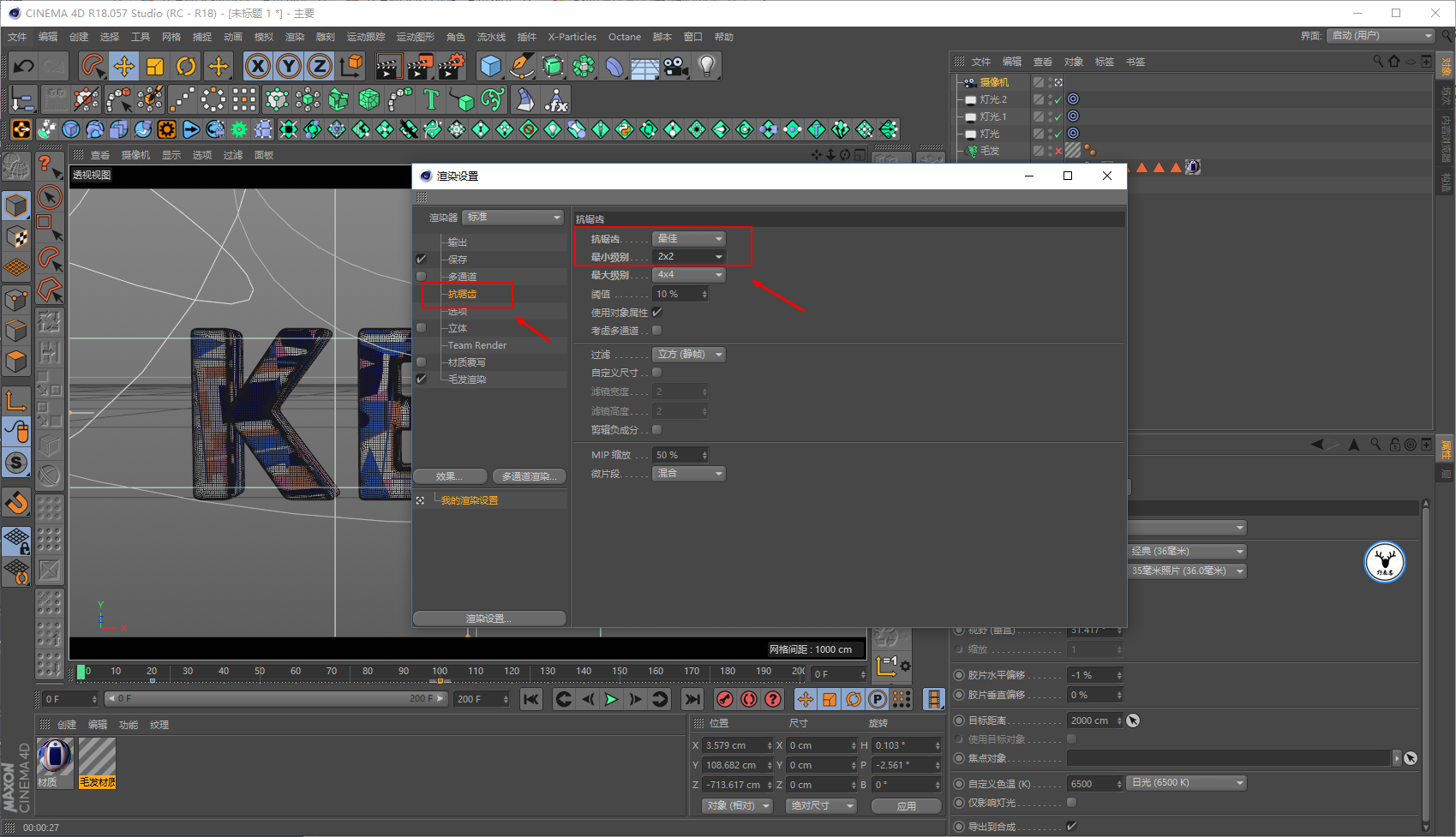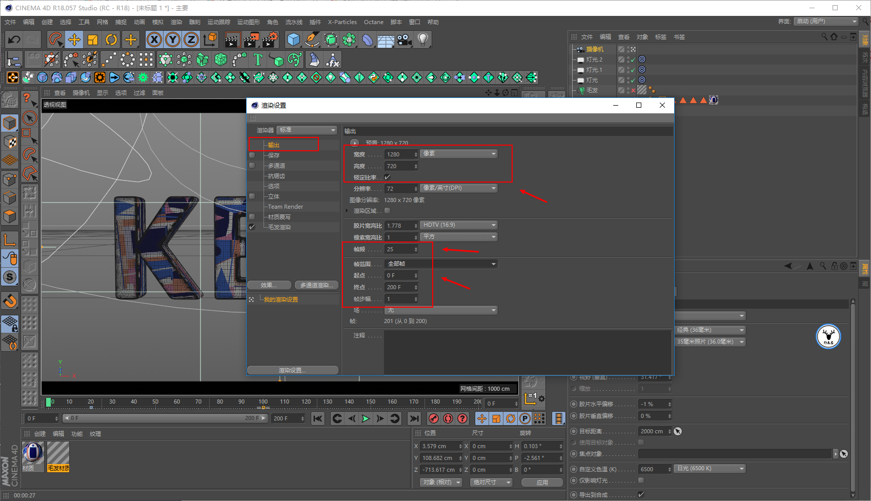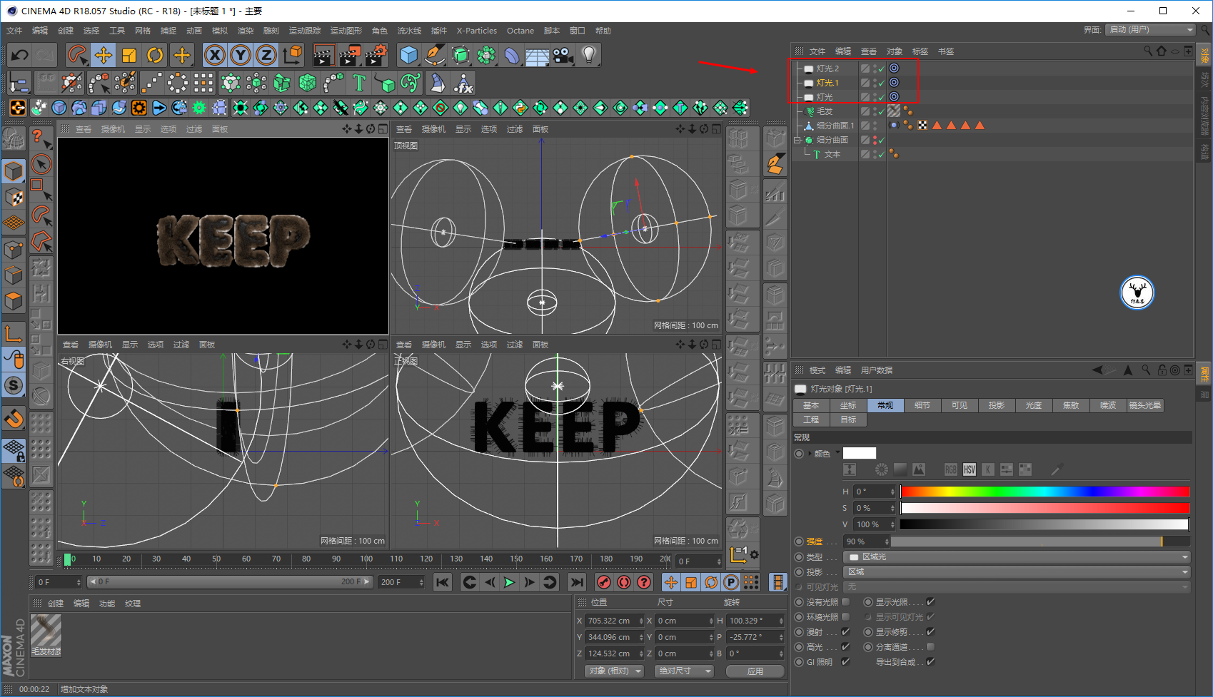 因为对于毛发材质来说,灯光也很重要,所以先打灯吧,然后再看着效果调整材质。
