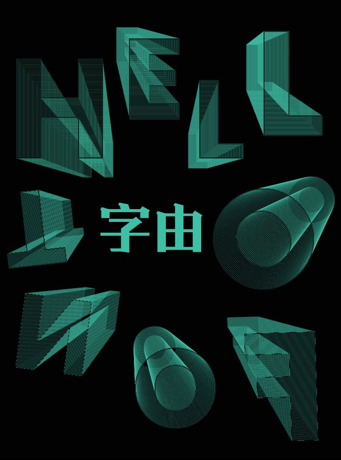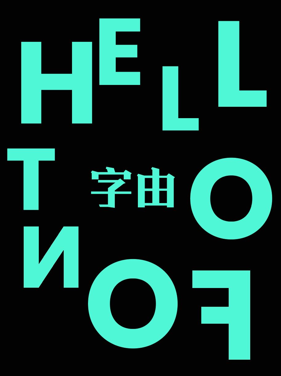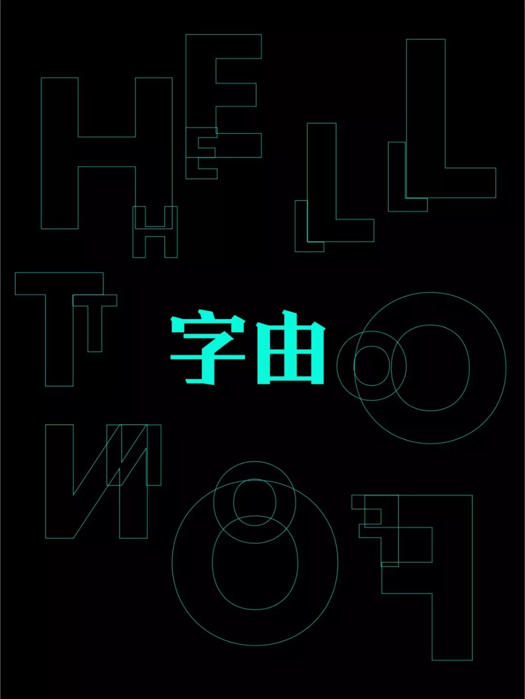 先说你们最关心的,打开Ai,新建一个文档,拉个黑色矩形,先在四周分别打上“hellofont”,字体为Poppins,再在中间打上“字由”,字体为汉仪锐智(都在客户端一键变换),稍微编排一下~