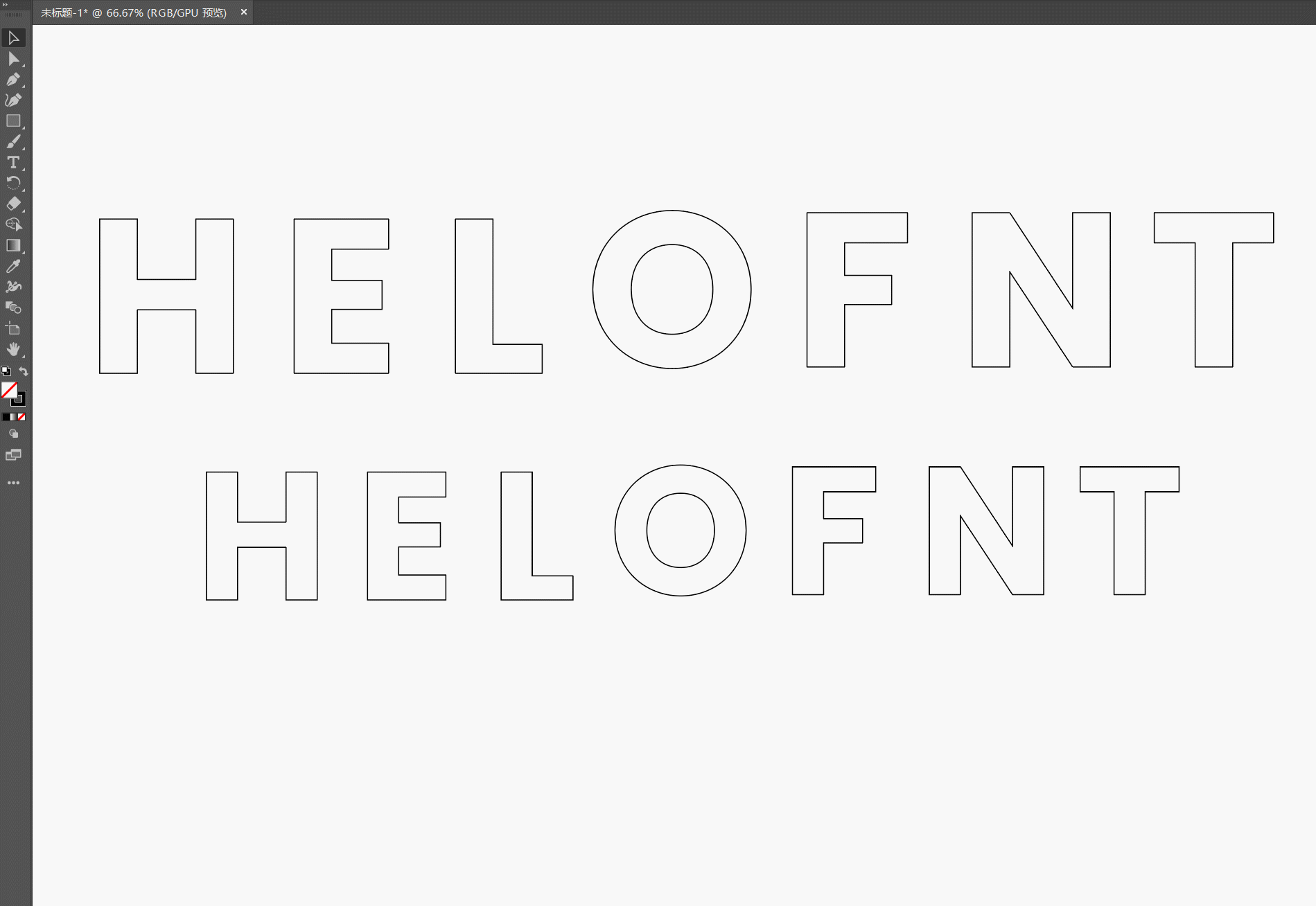 收!我发现了,要想有那种虚实结合的效果,就要删减部分笔画,还是拿H举例,用钢笔工具把内部描边都去掉。