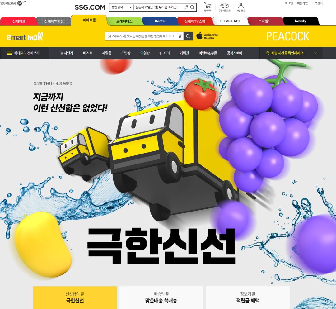 不多扯了,今天看看韩国的emart.ssg.com电商网站是如何设计的。为什么选这家?因为这家的设计最为典型…