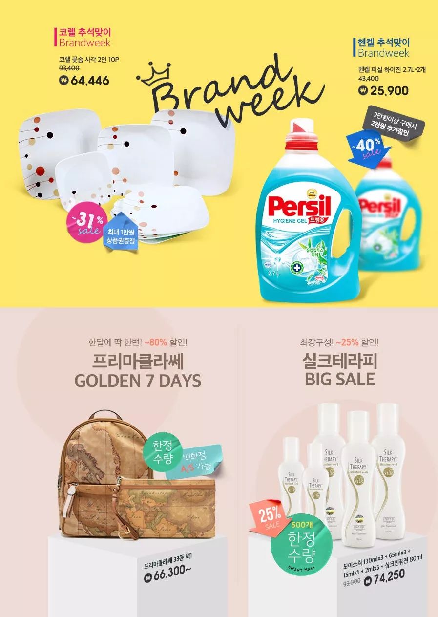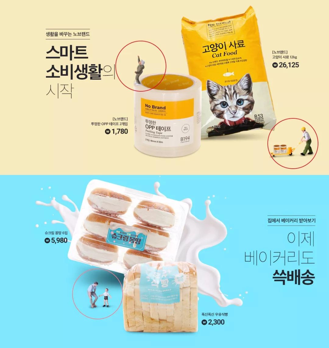 但是emart网站大多数banner海报都是纯色背景,这意味要想页面不单调,只能从其他方面下手。