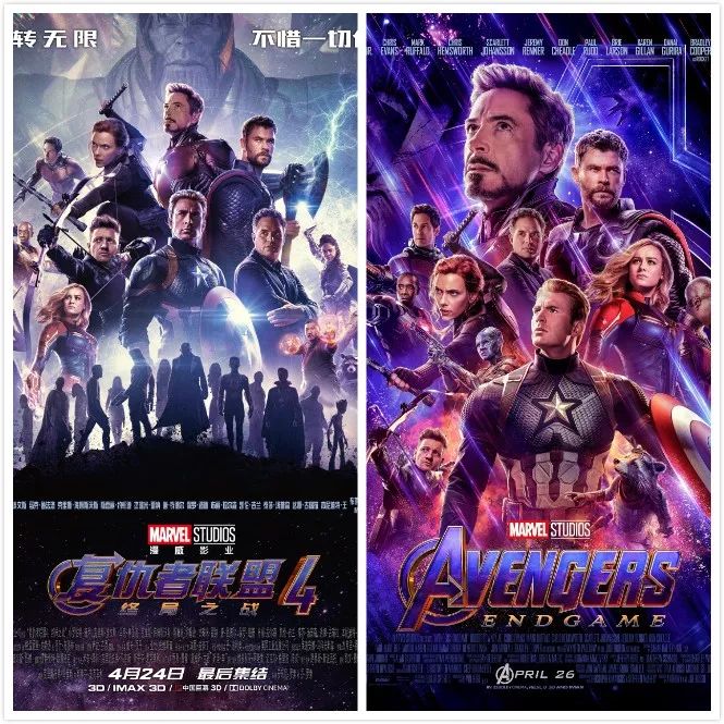 譬如中版的上方有电影《雷神3》的武神与幸存者团队出现,而黑豹妹妹Shuri则与“化灰”团队出现在海报下方,而美版是没有的,角色精简了很多。