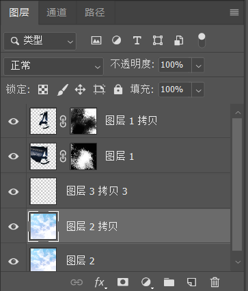 给复制的A添加一个黑色的蒙版,原来的A加白色蒙版(ctrl+i可以切换),然后选择一个喷溅画笔,开始涂抹(前景色要和蒙版颜色相反哦)。