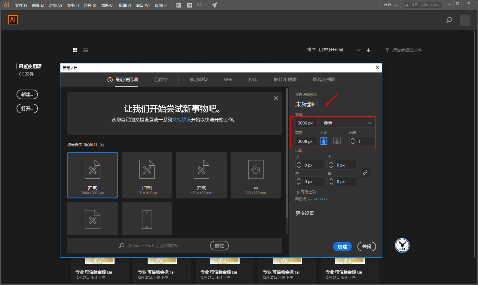 打开Ai,新建画板,画板尺寸和你准备的图片素材一致就好: