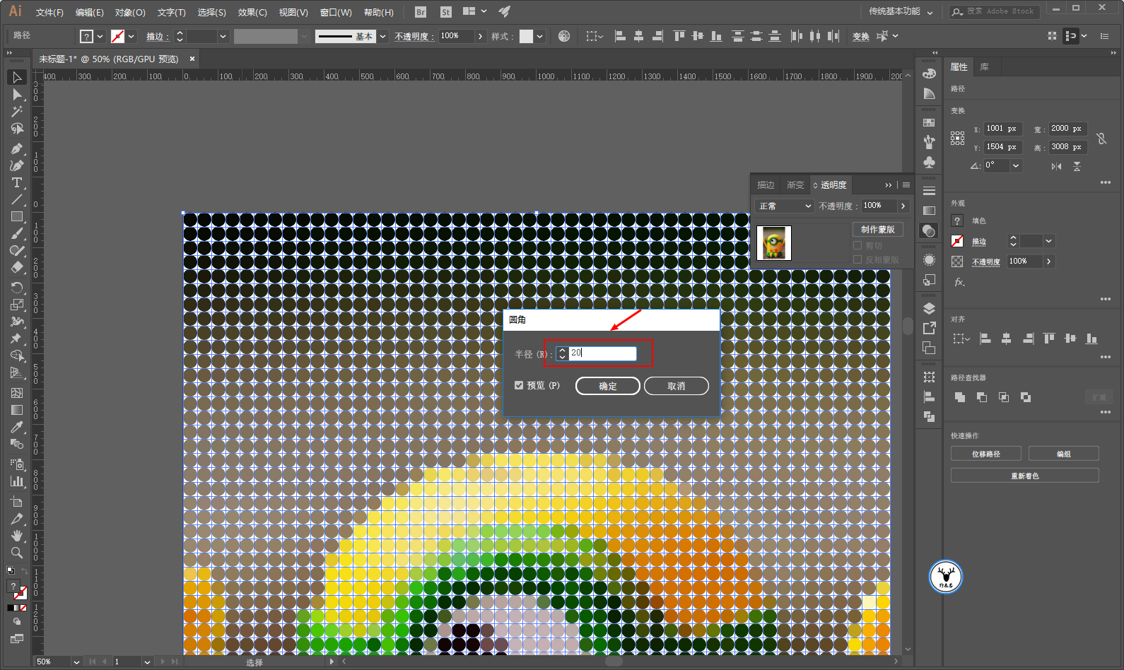 再次选中所有对象,执行效果-风格化-圆角: