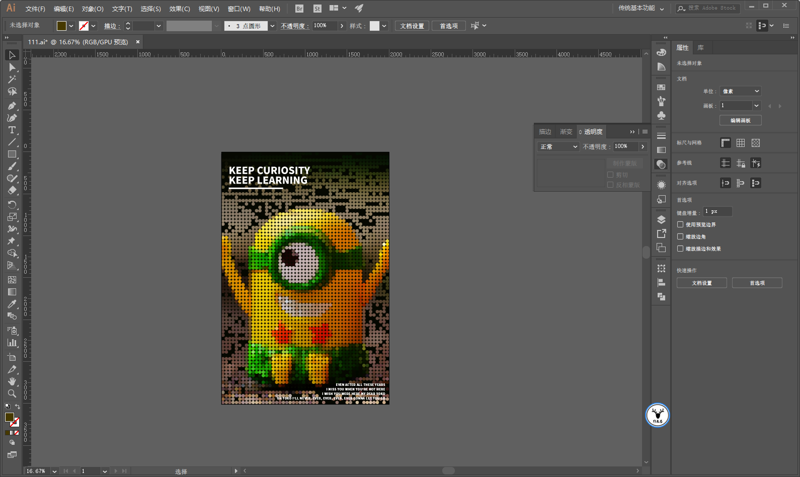 试了试以后,发现用Ai结合PS可以很好的完成这个效果,来吧,今天我们就尝试着将图片制作成围棋效果吧!